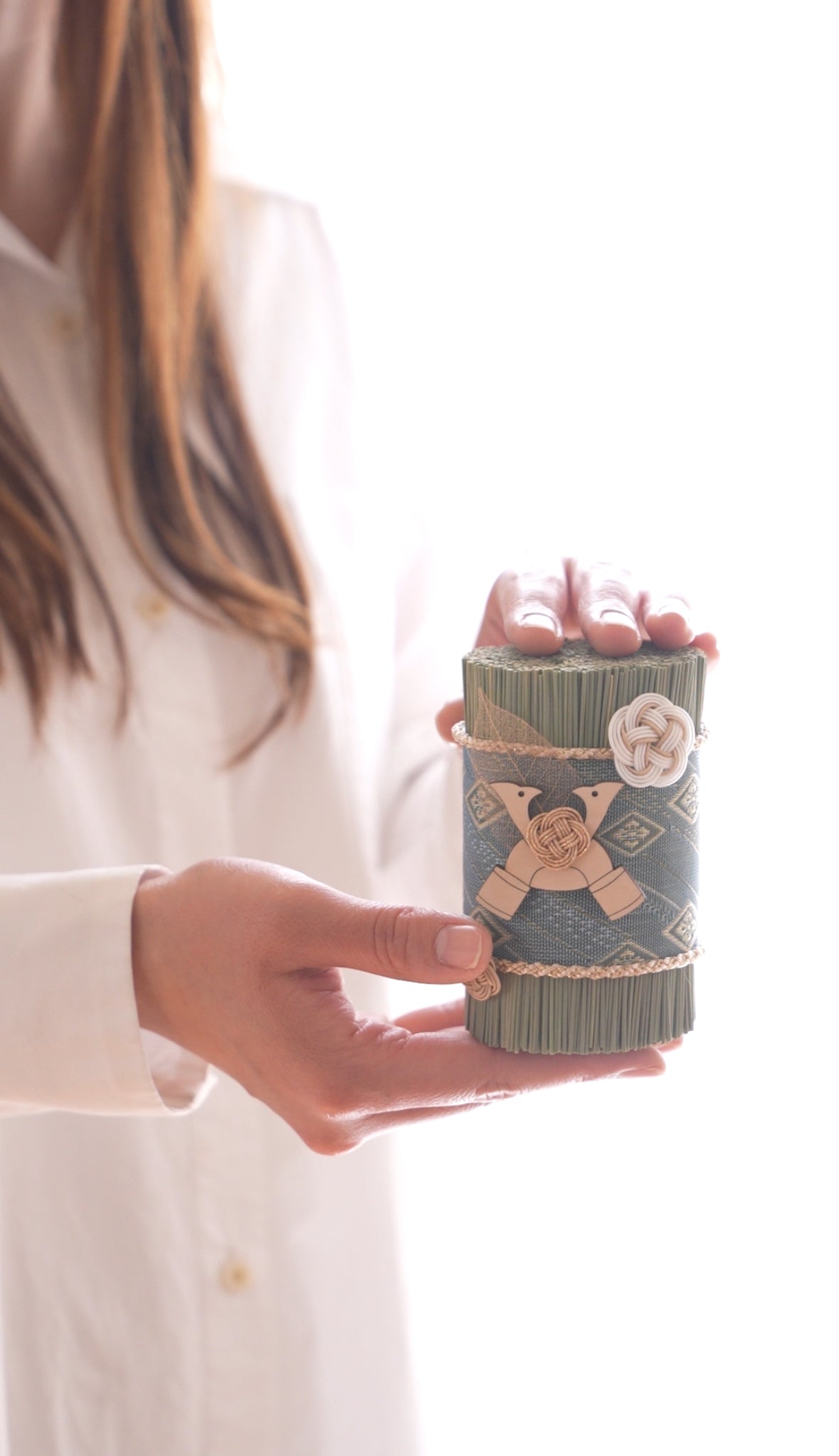この作品は、60gの藺草を束ねてお作りしております。60という数字は、巡りめぐって原点に還る節目の数。これまでの時間を大切にしながら、これからの成長と新しい一歩を願う意味を込めました。まっすぐに育つ藺草の力と共に、健やかな未来をそっと守るお飾りです。